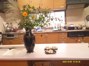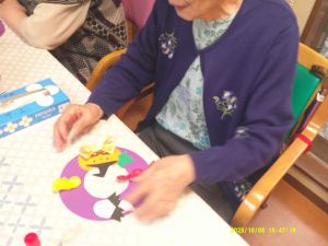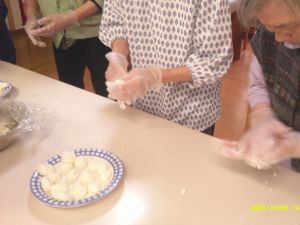 10月6日は、十五夜です。あやめユニットでは、ススキ・コスモス・萩の花を飾り、秋の収穫を祝い満月に因んだ丸いお団子を作って美味しく頂きました。