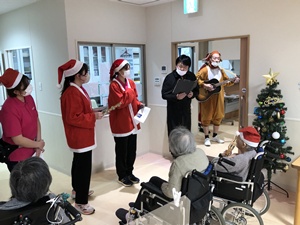 職員が各ユニットを訪問し、歌のプレゼントをお届けしました。